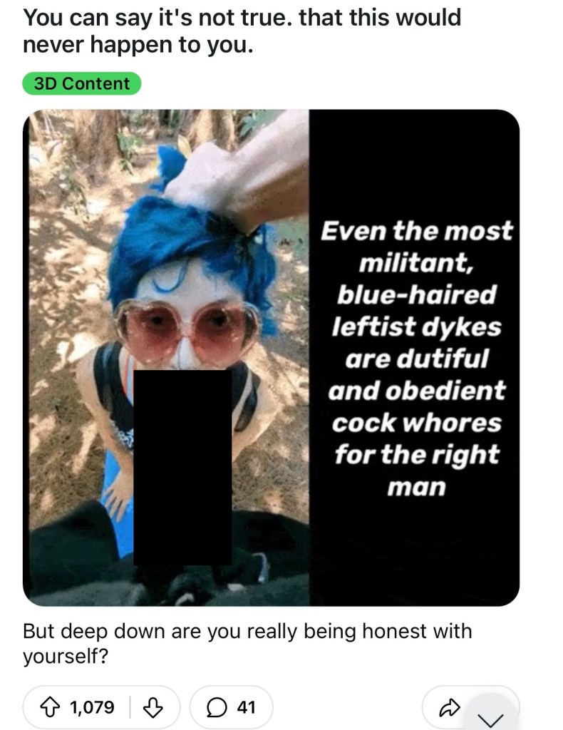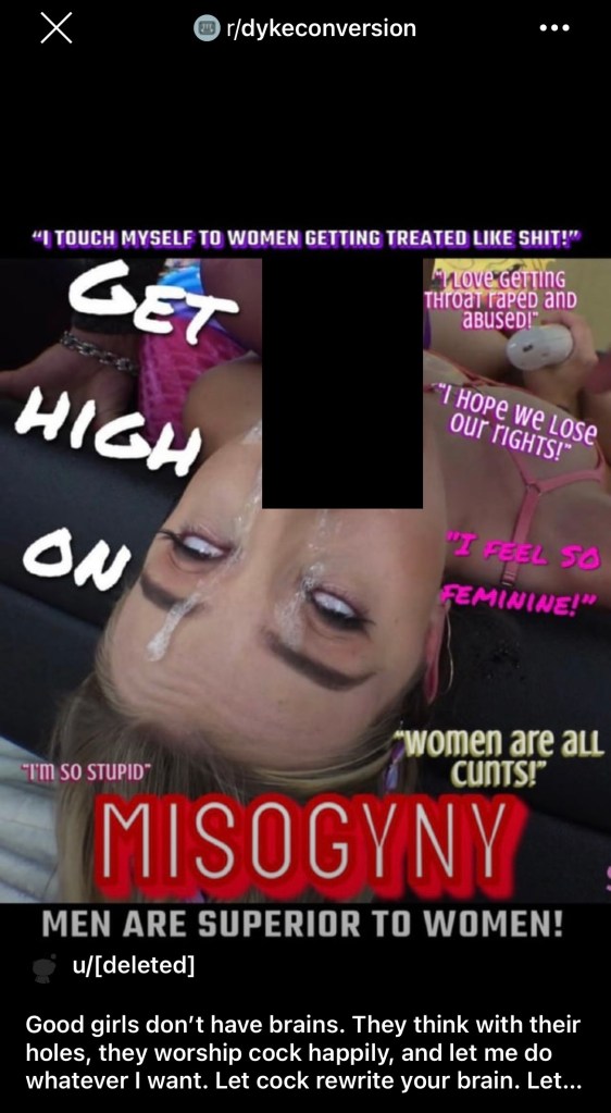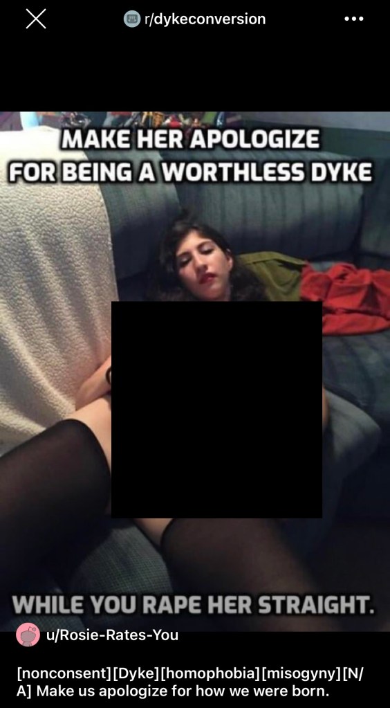 The content on r/sapphicsexualityplay remains indistinguishable from what was previously posted on r/dykeconversion, as we documented in a 2024 article. A superficial name change does nothing to mitigate the harm caused by this space.